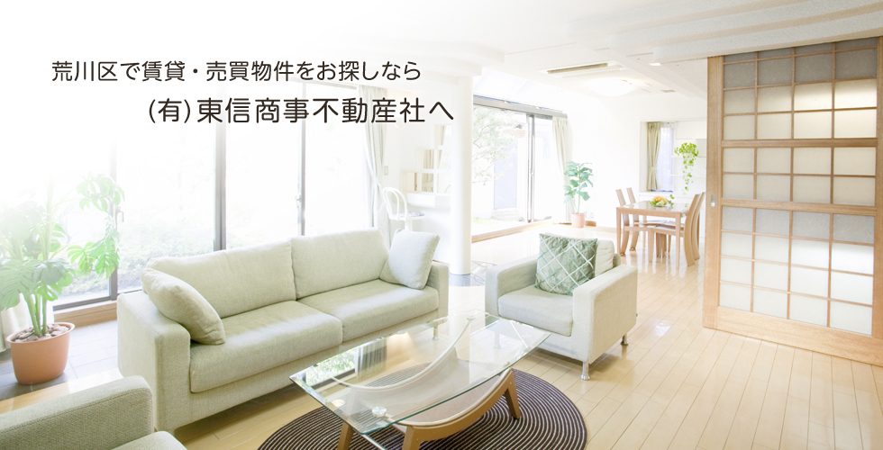 JR常磐線三河島駅前にある(有)東信商事不動産社は、荒川区・日暮里など地域密着な物件情報を、地元で50年以上、親身になってお探しするアットホームな町の不動産屋です。